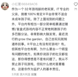 这位澳洲家长讲,她的孩子为了游戏里凌晨两点发放的稀有种子,硬是哭着睡下。最后,她和孩子的爸爸亲自守到深夜,学会了怎么抢东西,才算圆了孩子的心愿。这个帖子一出,瞬间引来上百条评论。