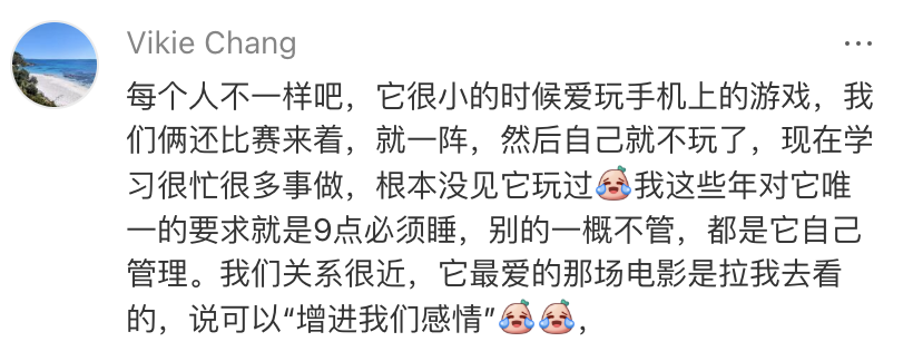 还有家长拿它和当年的“偷菜”做比较,说心理是一样的。也有人调侃,“哈哈做你的娃太幸福了,我家孩子那天被我凶去睡,估计心里很委屈。”