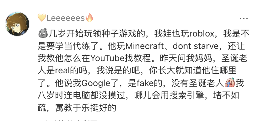 类似的故事在家长群里比比皆是。有人说,孩子的生日礼物不再是玩具,而是 Robux;圣诞礼物不再是书本,而是 Robux;甚至连压岁钱,都得换成 Robux。