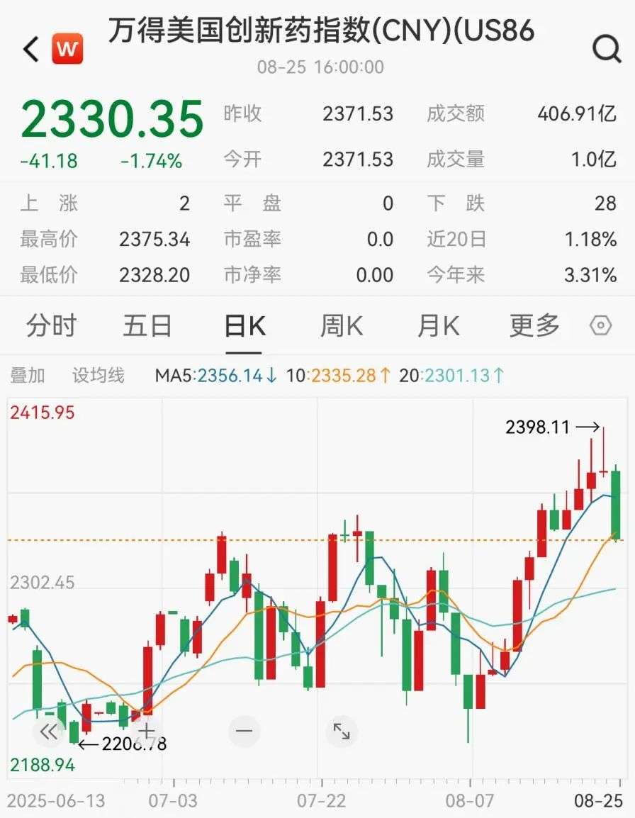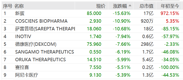 个股方面,莫德纳(Moderna)跌6.53%,精密科学跌3.81%,辉瑞制药、再生元制药、阿里拉姆制药、默克均跌超2%。