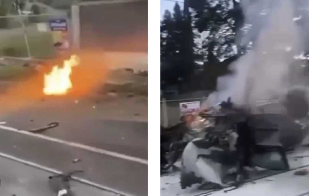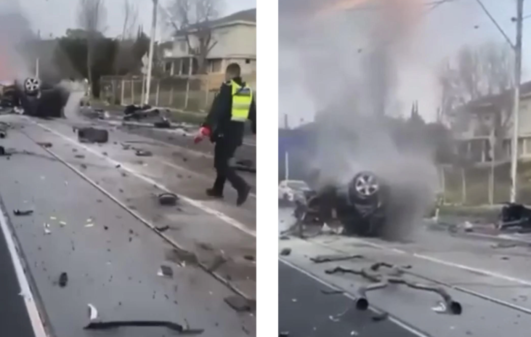 事故发生在周日下午6点前,地点位于Toorak路与Kooyong路交汇处。视频显示,这辆Jeep失控后直接撞上路边住宅的砖墙,随即爆炸起火,零部件飞散数百米。目击者描述称“火光冲天,轰鸣巨响”,一度以为司机当场身亡。
