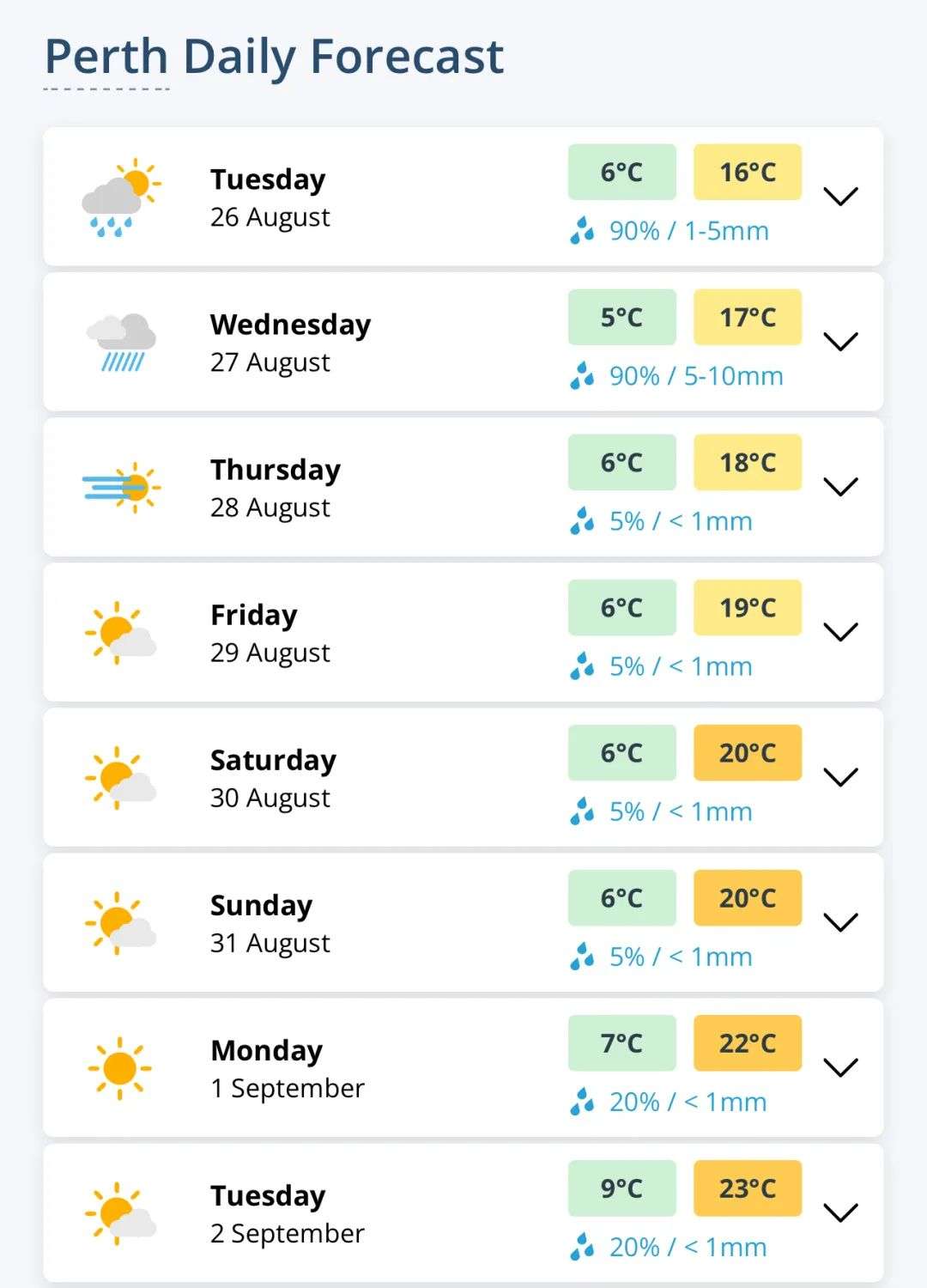 2025年8月25日星期一,珀斯迎来了近50年来最冷的一天,最高气温仅为11.4 摄氏度。