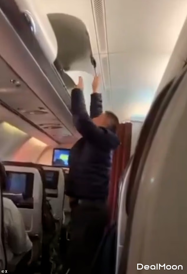 这起戏剧性事件据称发生在一架马汉航空(Mahan Air)从德黑兰飞往迪拜的航班上。视频中,一名据称是华人面孔的男子起身,伸手进入他座位上方行李舱中的一个包里翻找。