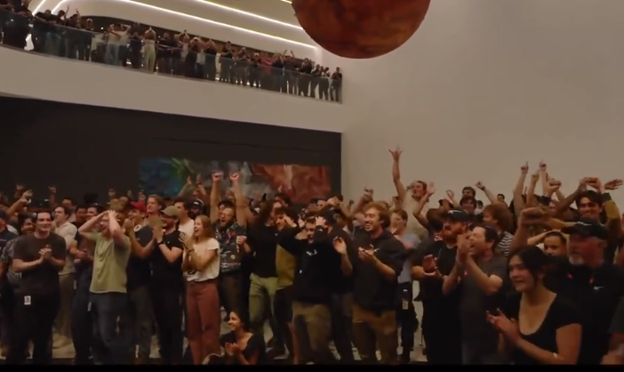 据直播画面显示,本次试飞,“星舰”1个小时飞越半个地球,最后成功溅落到印度洋。发射现场欢呼声、鼓掌声响成一片。