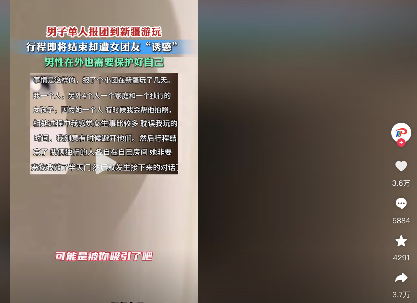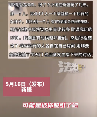 新疆女团友的“色诱”事件,让我想到了昨天热搜上的一个新闻。