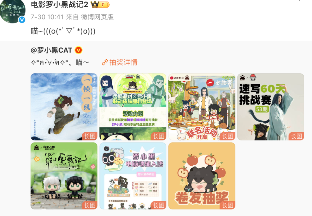 《浪浪山小妖怪》与超过30家品牌达成IP联名和授权合作,推出了超800种周边产品。尤其与某咖啡品牌的联名活动,从联名系列饮品到套餐附赠周边,几乎全面覆盖了部分观众的需求。不少城市的相关限量周边套餐在上线5小时内就售罄,联名系列饮品3天销量突破500万杯。