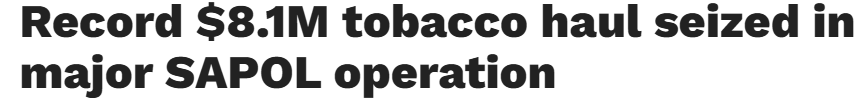 据报道,南澳警方通过查获该州有史以来最大规模的非法烟草库存(价值近810万澳元),对该州非法烟草贸易造成重大打击。