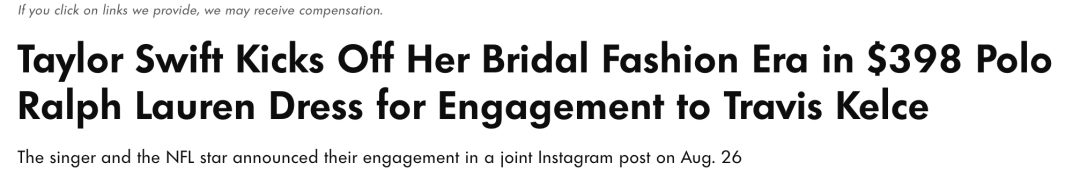 除了钻戒,细心的粉丝也捕捉到了斯威夫特订婚照中的造型。