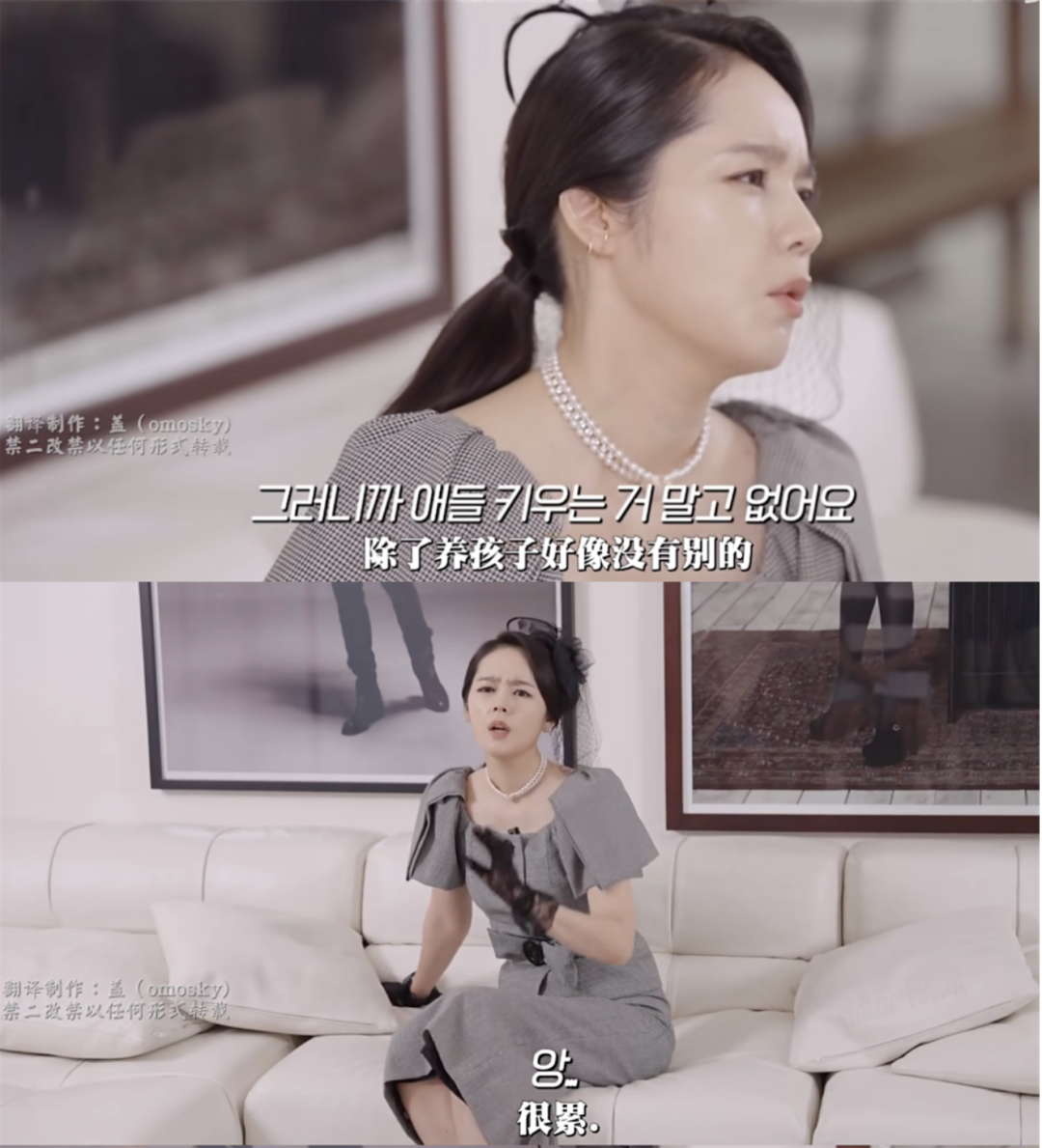 韩国女演员韩佳人也曾在综艺节目中表达过自己在育儿上付出的巨大心血。她每天要陪伴孩子、辅导功课,忙到根本没精力管家里的卫生情况。成为妈妈之后更是失去了自己的生活,感叹自己“除了养孩子好像没有别的,真的很累”。