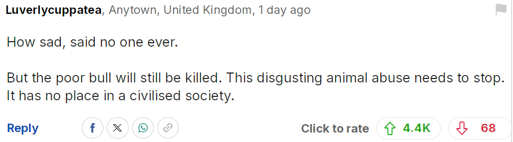 多么可悲啊——其实根本没人会这么说。但可怜的公牛最终仍然会被杀死。