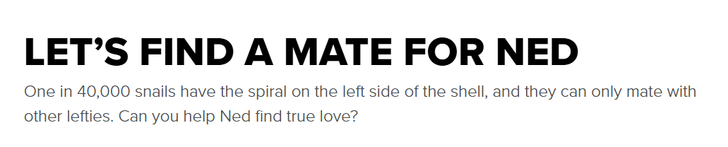 对于绝大多数蜗牛来说,寻找伴侣只是生命循环的一部分;但对Ned来说,这却几乎是一场不可能完成的任务。