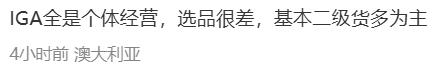 除此之外,还有许多评论直指IGA超市的品控问题。