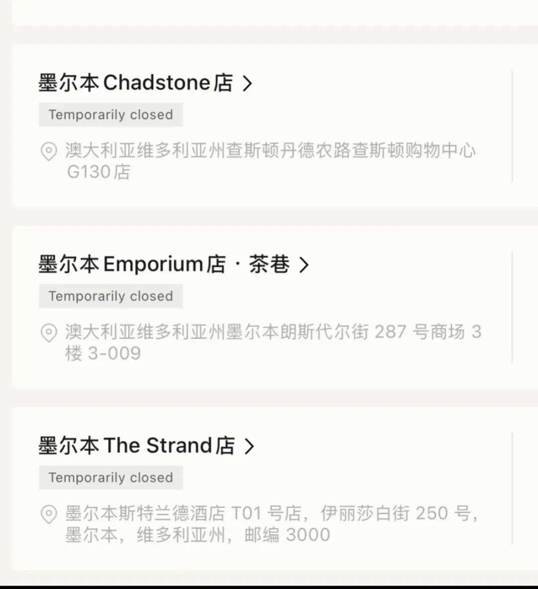 一周前,墨尔本的多家喜茶门店同样突然“集体停业”。