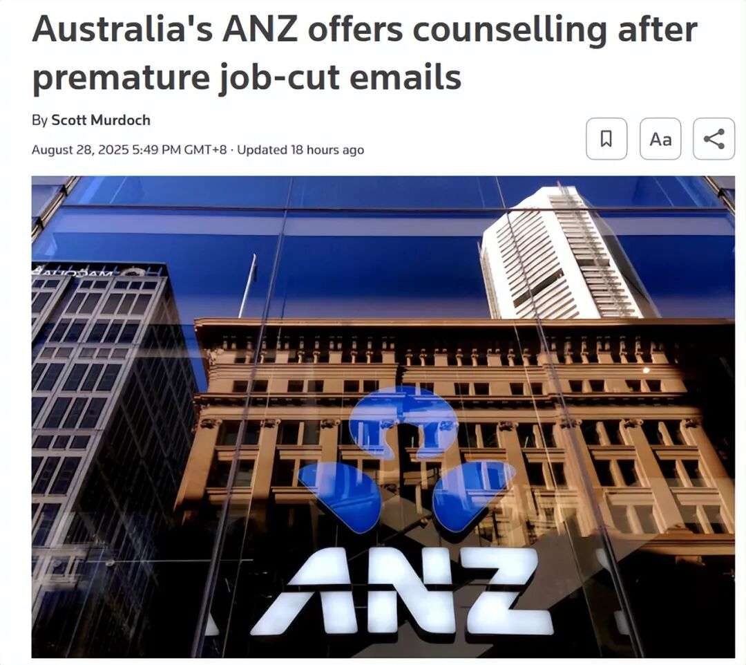 澳新银行(ANZ)的一些零售部的员工本周三收到了一封邮件,直接告诉了他们在该行最后工作到哪一天,被指示交回公司的电脑。