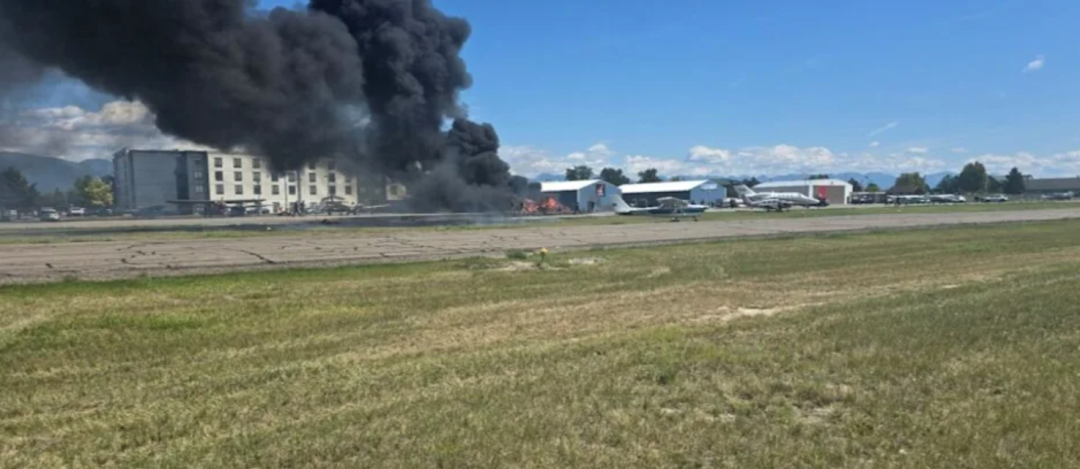 蒙大拿州卡机场飞机对撞、浓烟滚滚