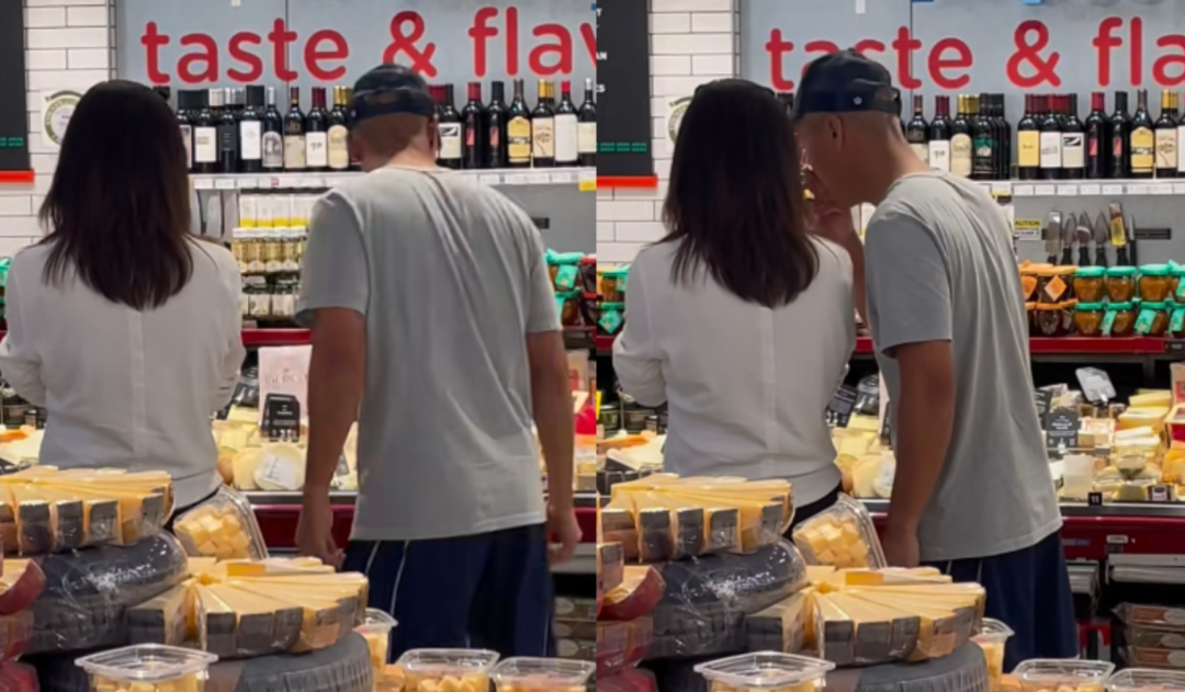 他们在超市里逛了好一会儿,再次被网友遇到时已经买好东西。