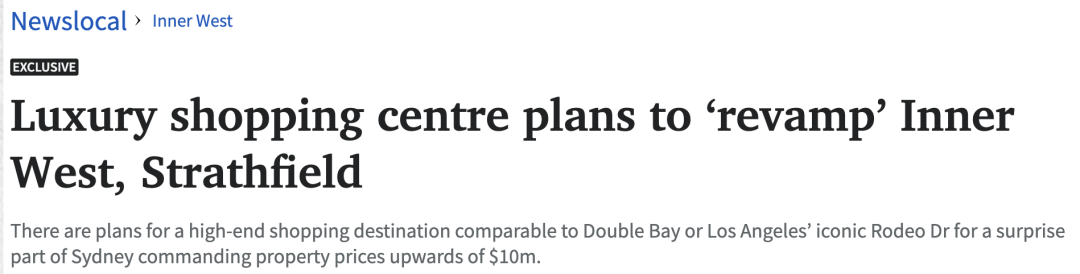 悉尼内西区的Strathfield最近热议不断:一个高端购物开发项目正进入筹划阶段。支持者甚至直言,这里未来有望成为