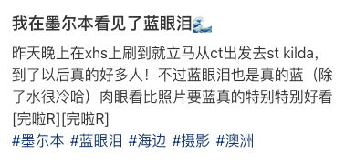 另一位网友发帖说:“凌晨四点stkilda好多人啊哈哈哈,蓝眼泪真的很美,不愧是墨尔本的自然奇迹。”