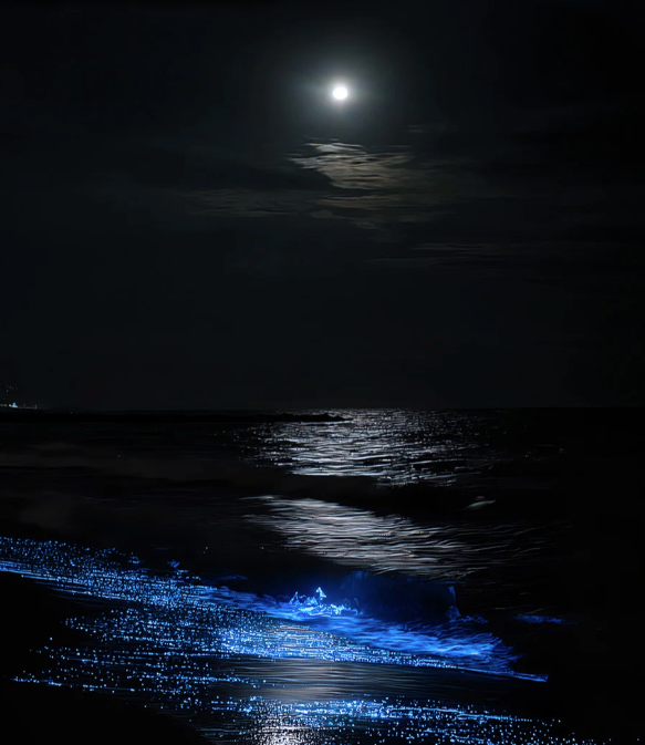 蓝眼泪不是每天都有,但只要条件合适,就能点亮整个海面。
