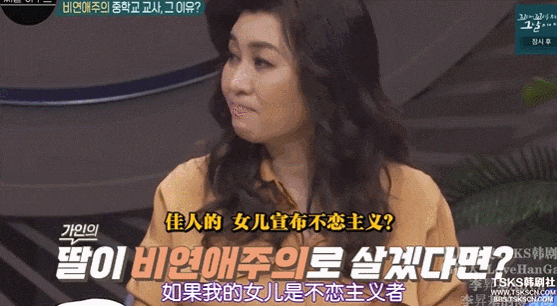 在一次节目中,韩佳人说,如果以后女儿选择不恋爱或者不结婚,自己也是完全赞成的。