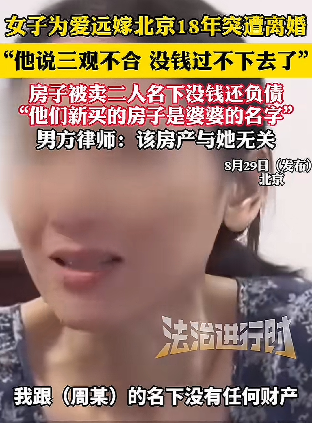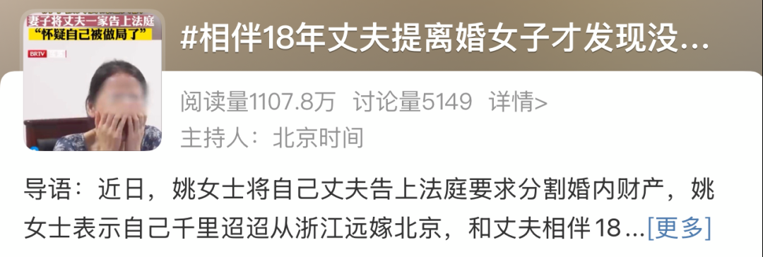 “相伴18年丈夫提离婚女子才发现没有财产”,这里的每个字我都认识,但放在一起却有些黑人问号脸了。