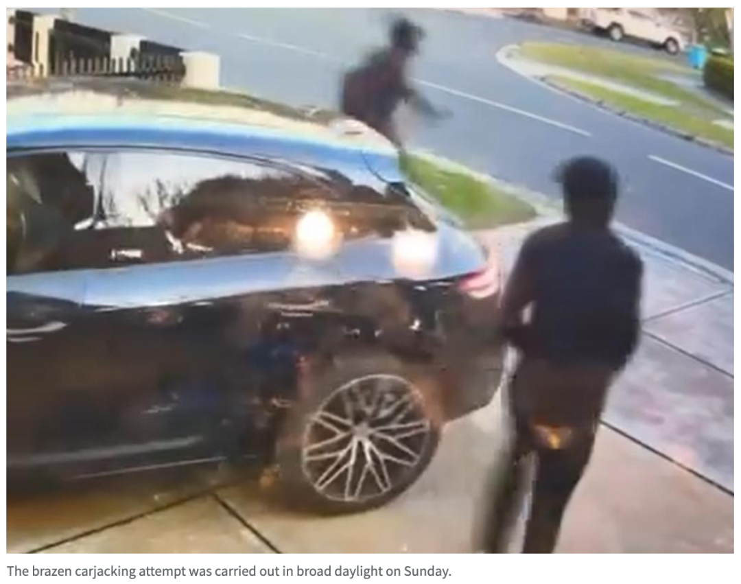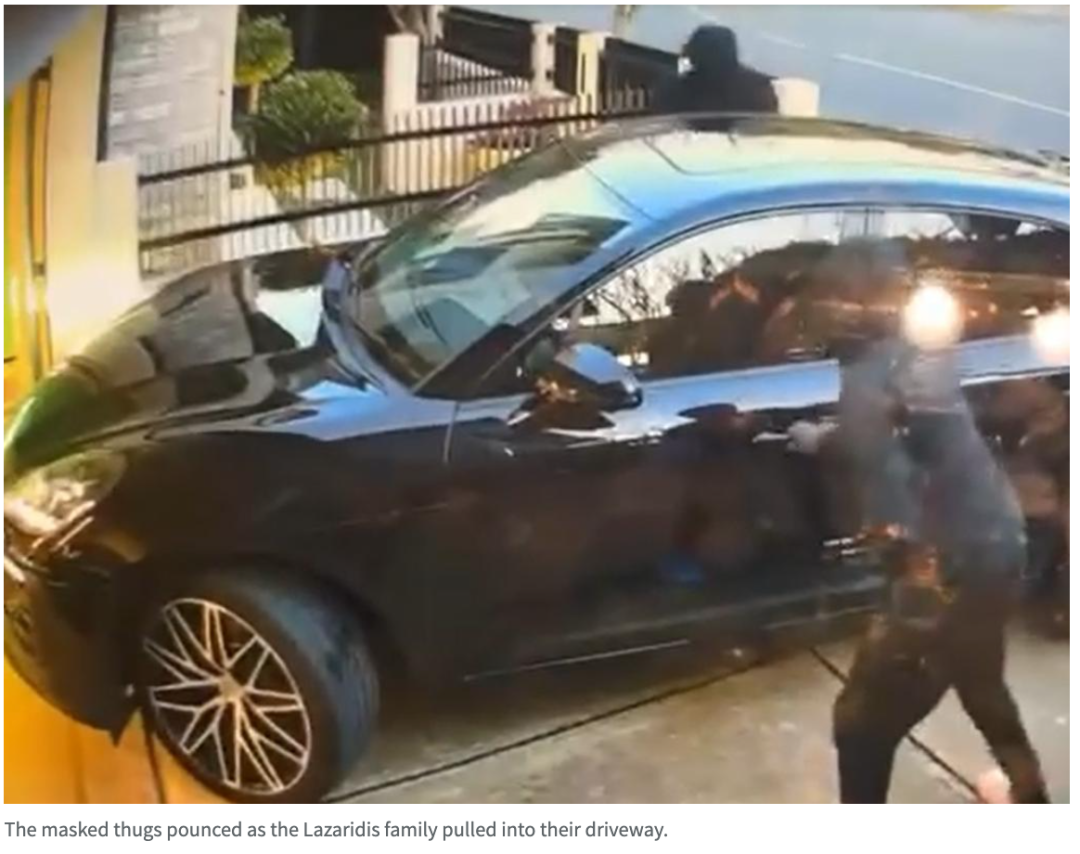 当Chris的妻子打开车门下车时,两名蒙面歹徒立马朝她的方向扑过来,吓得她赶紧退回了车内,大喊有劫匪,并快速锁住了车门...