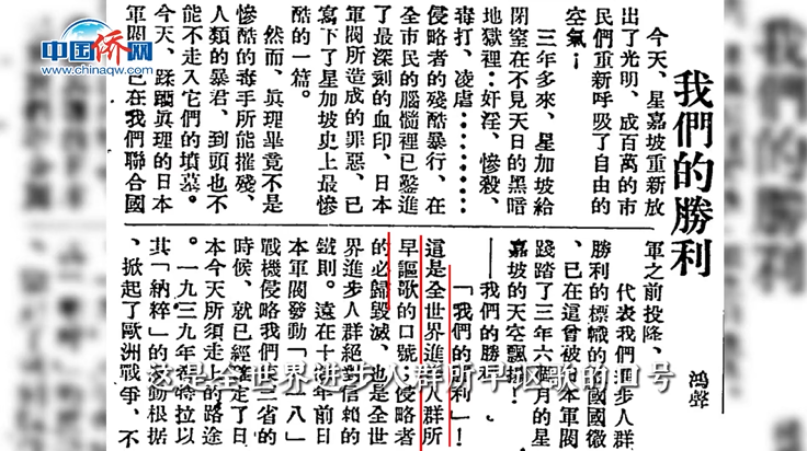 正如《星洲日报》80年前报道中所言:“今天,全中华民族的解放战争、全世界进步人群维护真理的正义战争,已得到了光辉的胜利!这是世界史上最跃进的一瞬、未来人类生活伟大转折的一天。”