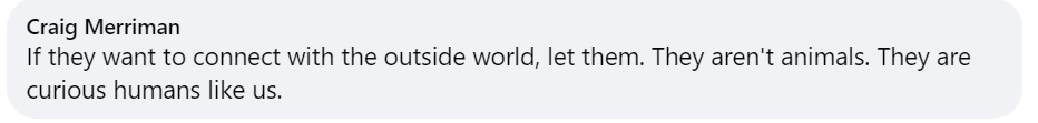 “如果他们想与外界建立联系,那就让他们去做吧。他们不是动物,他们和我们一样,是充满好奇心的人类。”