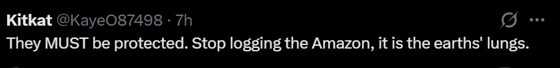 “他们必须得到保护,而且尽快停止在亚马逊雨林的伐木活动,那里可是地球的绿肺。”