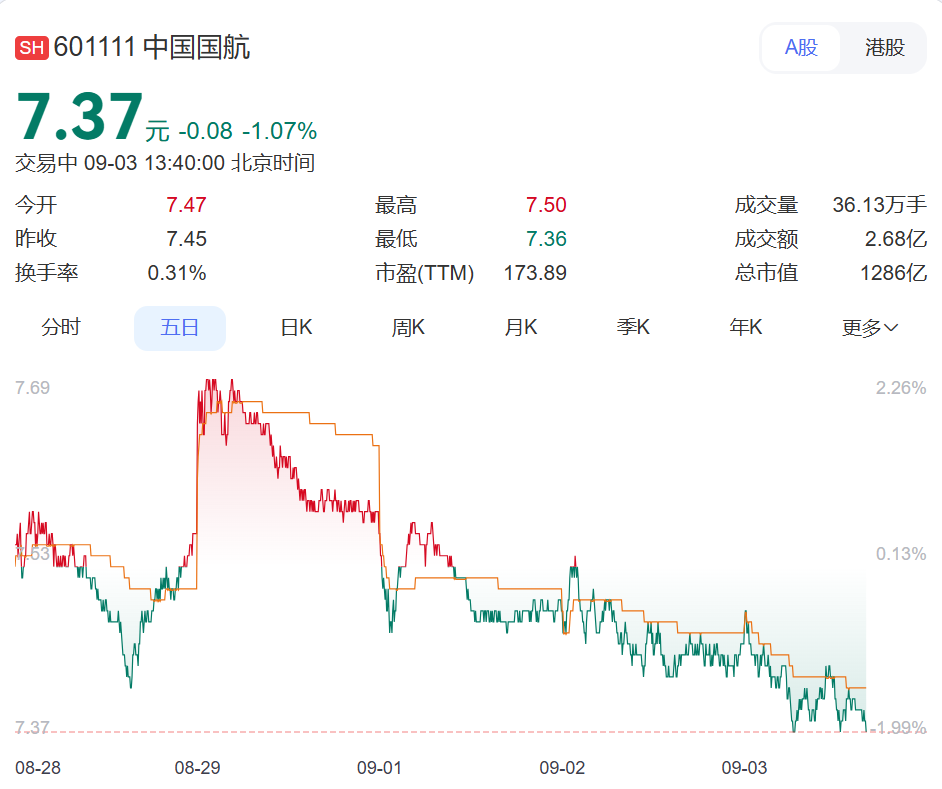 股价方面,近期三大航股价均表现疲软,9月3日,三大航齐跌超1%。年初至今,尽管大盘整体上扬,但三大航股价均不同程度下跌。