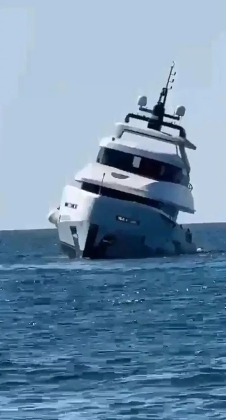 “太可怕了!”现场视频清楚记录了游艇是如何一步步沉入海中的。船体慢慢倾斜,海水疯狂涌入,整艘船就像一个巨大的玩具被看不见的手推倒一样。
