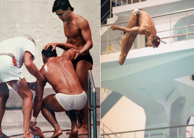 在同届3米跳板预赛中,洛甘尼斯还曾因为动作失误,头部撞到跳板,当场血流不止,最终缝了四针。