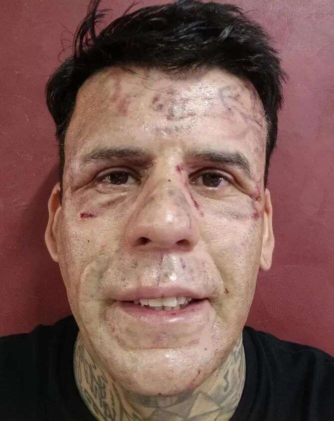 目前,Leandro已经洗了5次文身,面部大片的文身痕迹已经淡了很多,要是用刘海遮遮额头,已经不太看得出来曾经的面貌了。