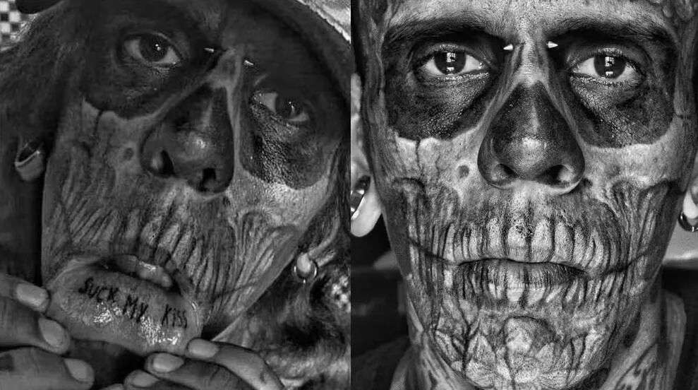 35岁那年,也就是2023年,Leandro已经正式被评为“全巴西文身最多的人”,他的整个身体全部被文身占据,甚至包括嘴唇里面。