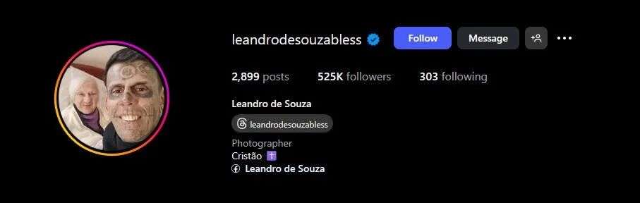 (Leandro此前在社交媒体上发的典型照片)