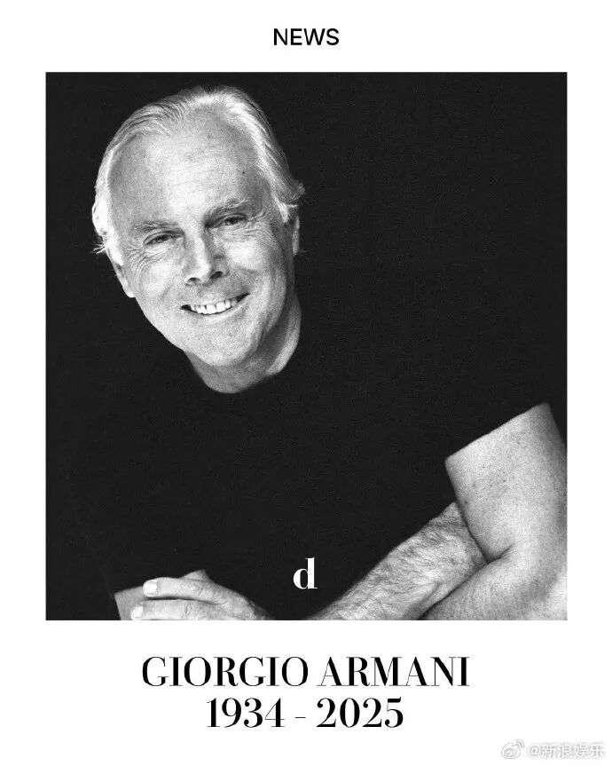 据外媒,时装设计大师Giorgio Armani(乔治·阿玛尼)离世,享年91岁。