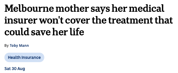 然而,她的私人医保公司Medibank却拒绝为这项治疗买单。