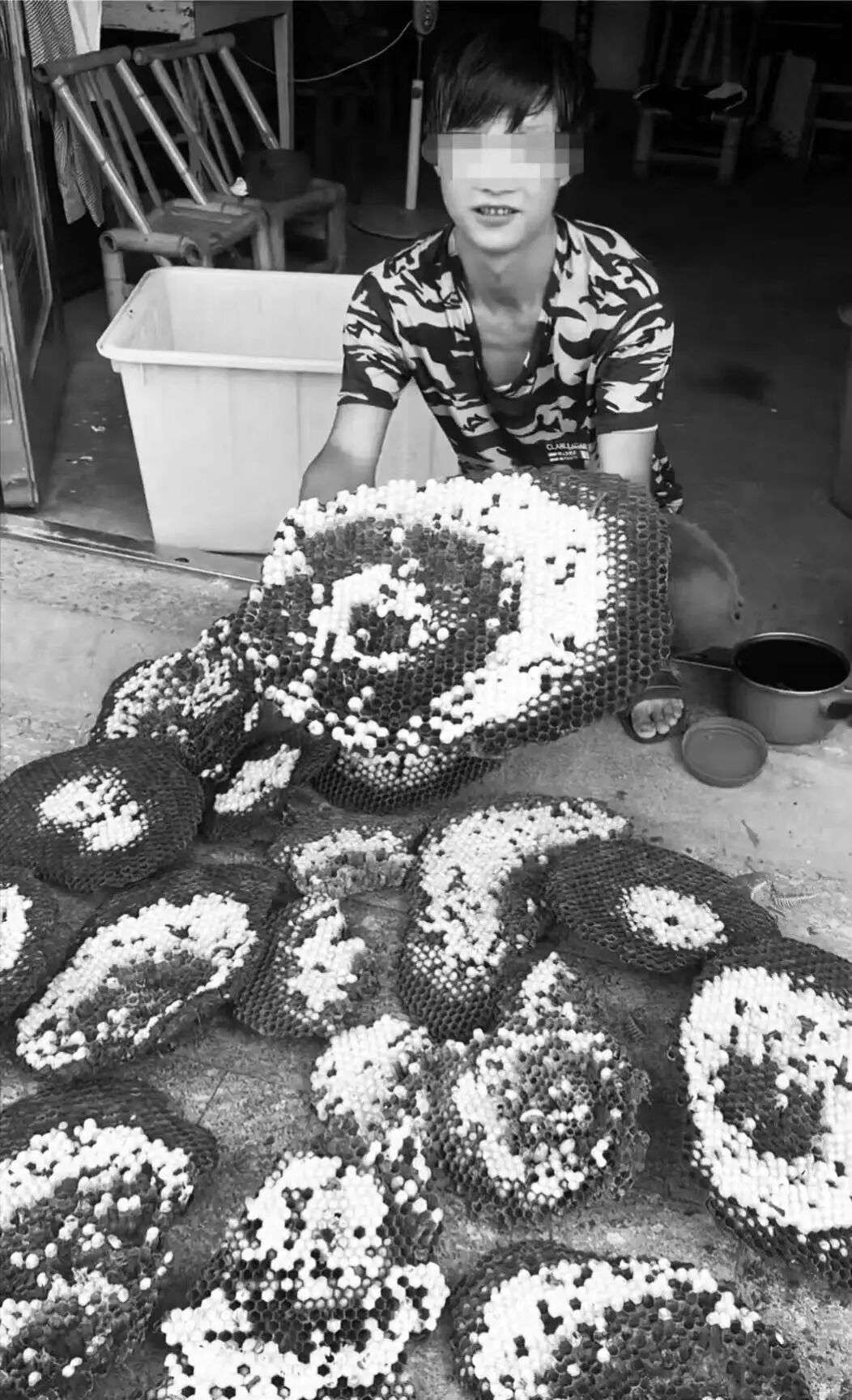 该博主来自广西,主要从事户外找蜂相关工作,包括摘、挖马蜂窝与销售蜂产品,他还经常在社交平台分享户外找马蜂的视频。