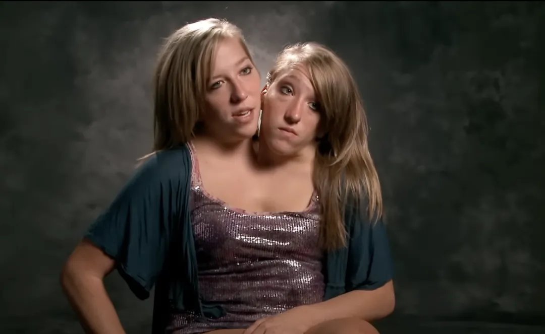 要知道,Abby和Brittany是极为罕见的“双头并肩连体”姐妹。她们有两个头、两个心脏,但从胸部以下共享一个身体,包括同一套生殖系统。