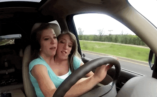日常生活中,她们要“分工合作”:一个人控制左边,一个人控制右边,才能走路、跑步、游泳,甚至开车——一个人踩油门刹车,一个人掌握方向盘。