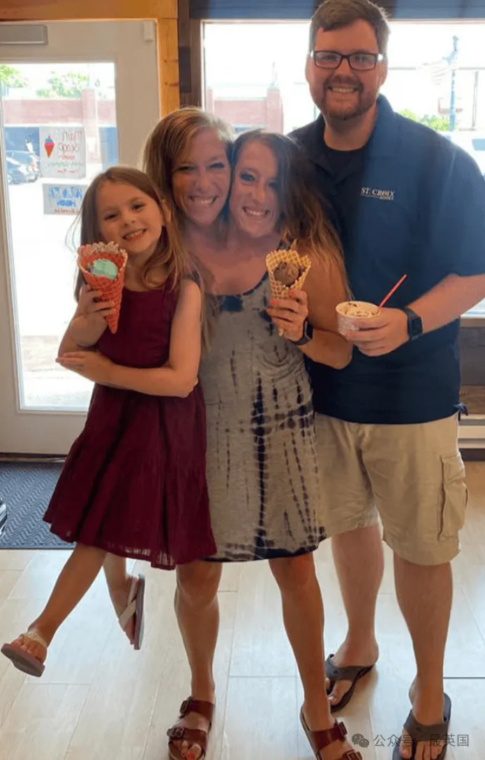她们其中一人、34岁的Abby,已于2021年与一位退役军人Joshua秘密结婚,而乔什还带着和前妻的女儿加入了这个新的家庭。