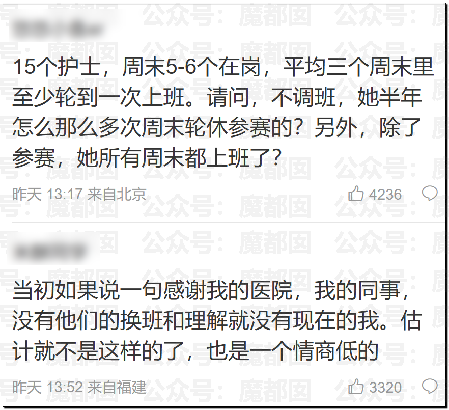 网友根据她自己发布的内容总结的时间,实在太夸张,真的有护士可以有那么多的比赛时间?
