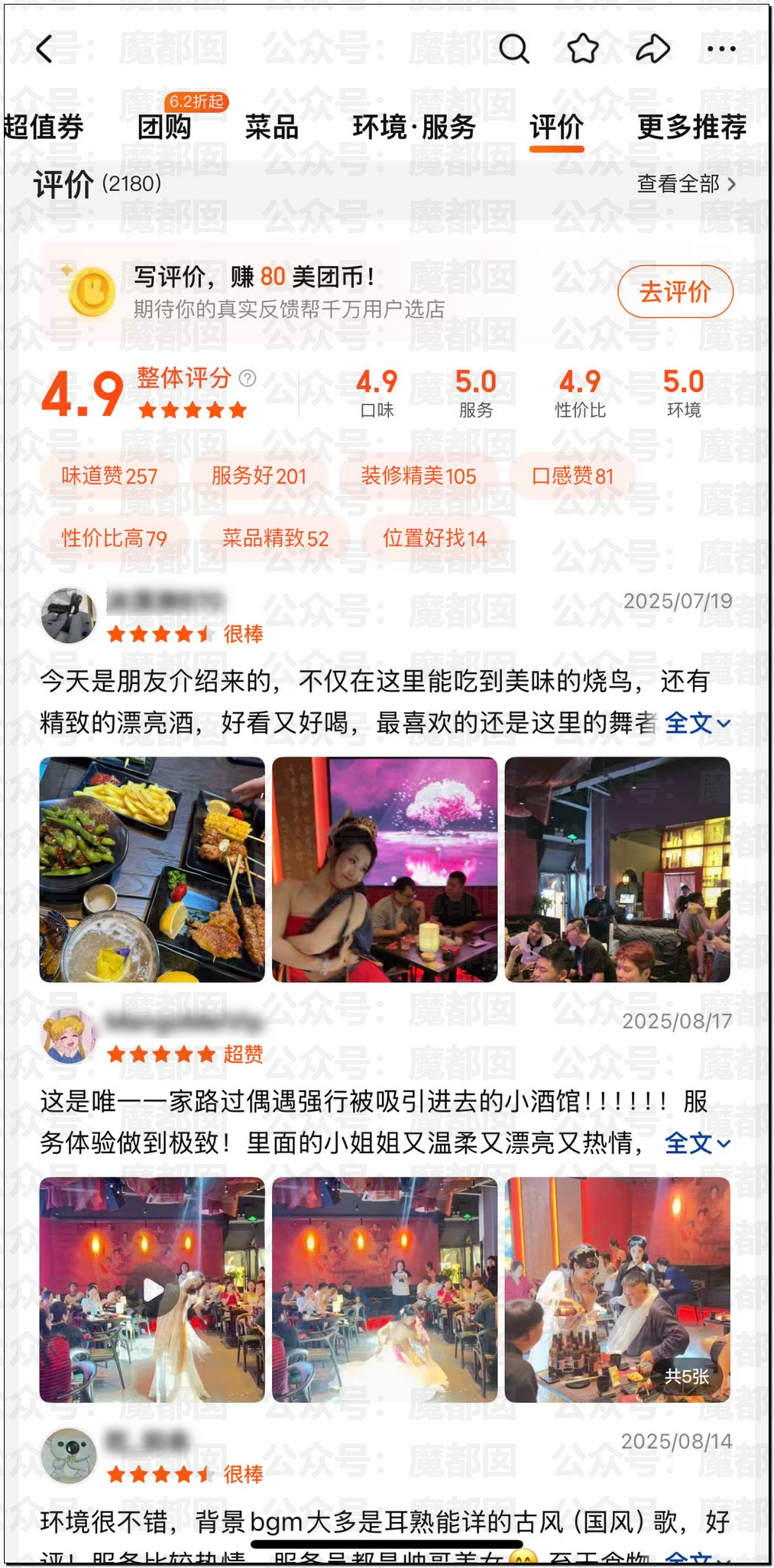这种东西主要是带坏风气,现实中的风气肯定带坏,大家想想,如果现实中没人管,这家酒馆生意独好,那么其他酒馆看看没事肯定会效仿,整个市场会变成什么样子?从点评上看,美女跳舞就是最大的噱头: