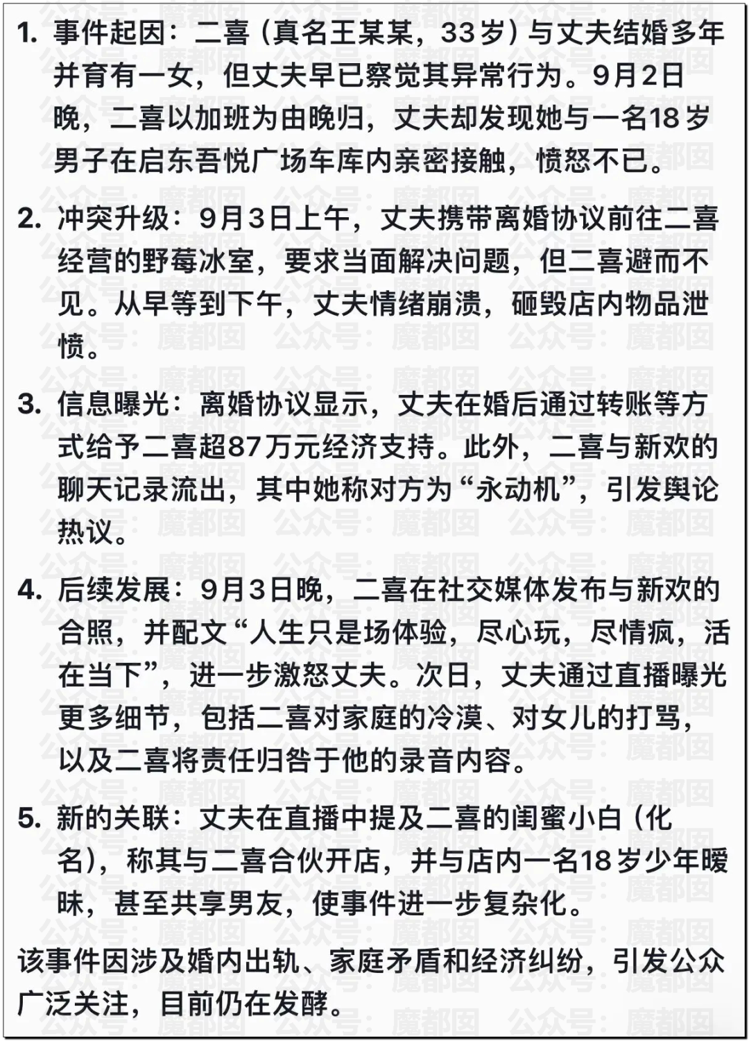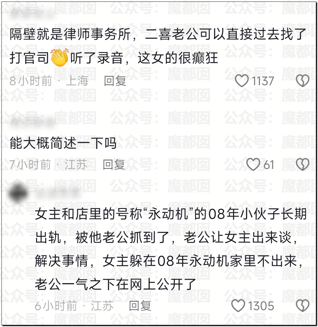 这个事情的一个“亮点”就在于女主出轨18岁男员工,称男员工是“永动机”……