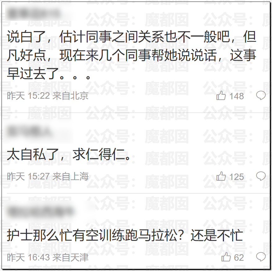 对了,还有那个马拉松护士的事情,我们直觉她应该干不下去了……上次她在镜头前的发言等于把全医院的领导和同事都卖了,这还怎么混?