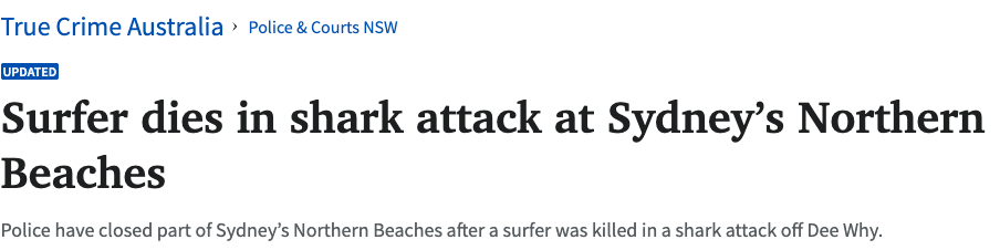 这已经是三年内悉尼第二起致命鲨鱼袭击。