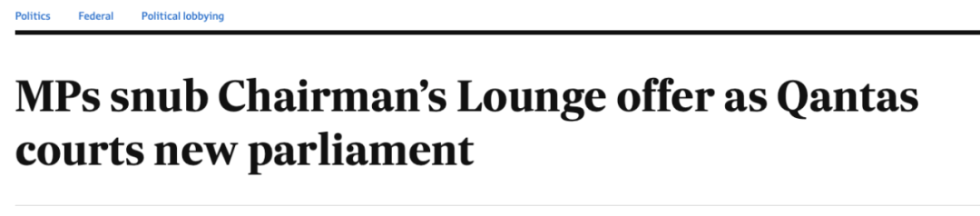 Qantas已于8月向本届新晋的37位众议院和参议院议员全部发出了加入 “总裁贵宾厅” (Chairman's Lounge)的邀请。