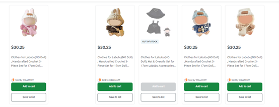 不仅如此,Labubu的周边也火了起来,于是在Labubu火爆后不久,Woolworths也不甘示弱,开始售卖Labubu玩偶专用衣服,悄然“入局”潮玩圈!