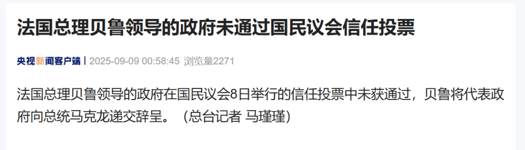 收藏刚刚,法国政府“垮台”!上任仅9个月的贝鲁在信任投票中失败,将率内阁集体辞职