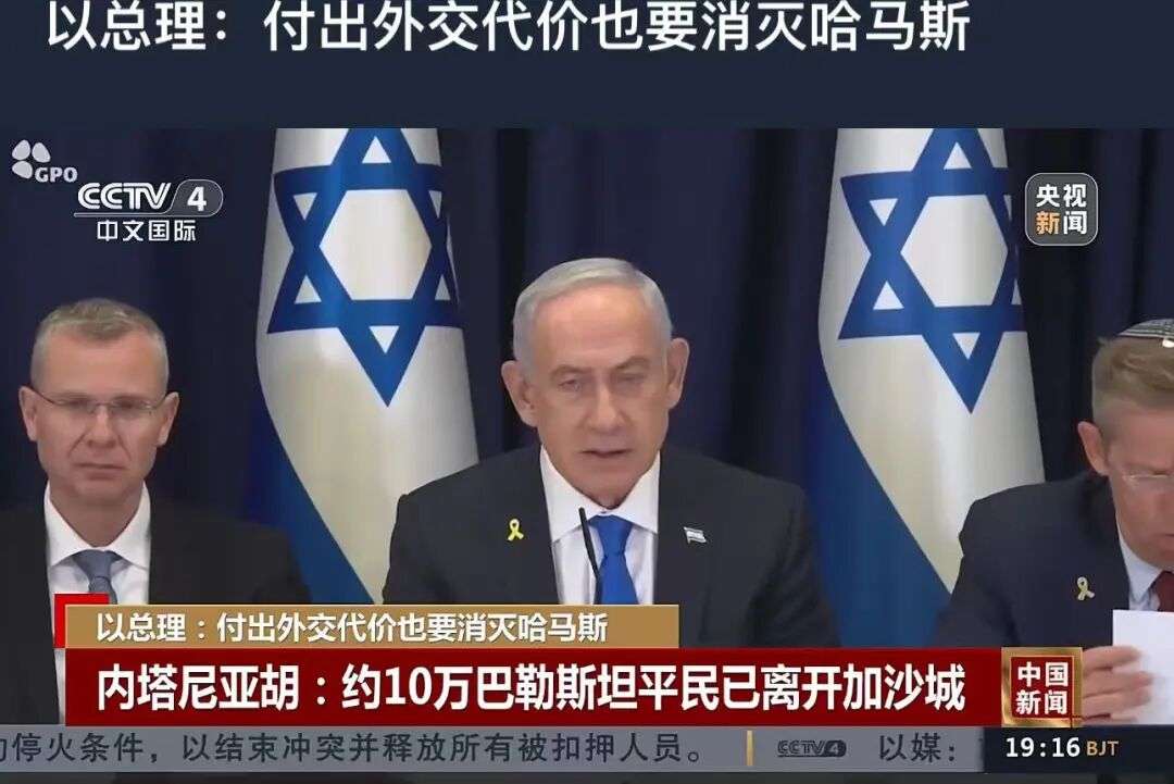 在讲话最后,内塔尼亚胡还警告加沙城居民尽快离开。